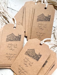 These gift tags can be personalised with a drawing of your holiday home or wedding venue, with any message of your choice.